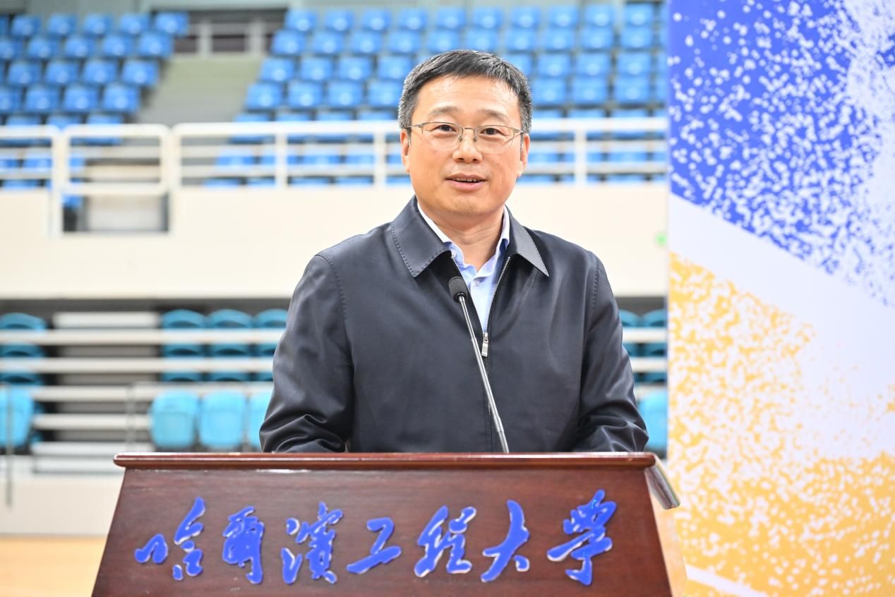 On October 11, the opening ceremony of HEU’s 2025 Autumn Student Cultural and Sports Festival and the “President’s Cup” Freshmen Basketball Tournament was held in the Competition Hall of the Gymnasium. The ceremony was attended by YIN Jingwei, President of HEU; DING Hu, Director of the 704th Institute of China State Shipbuilding Corporation (CSSC); and LI Rongsheng, Deputy Party Secretary of HEU.