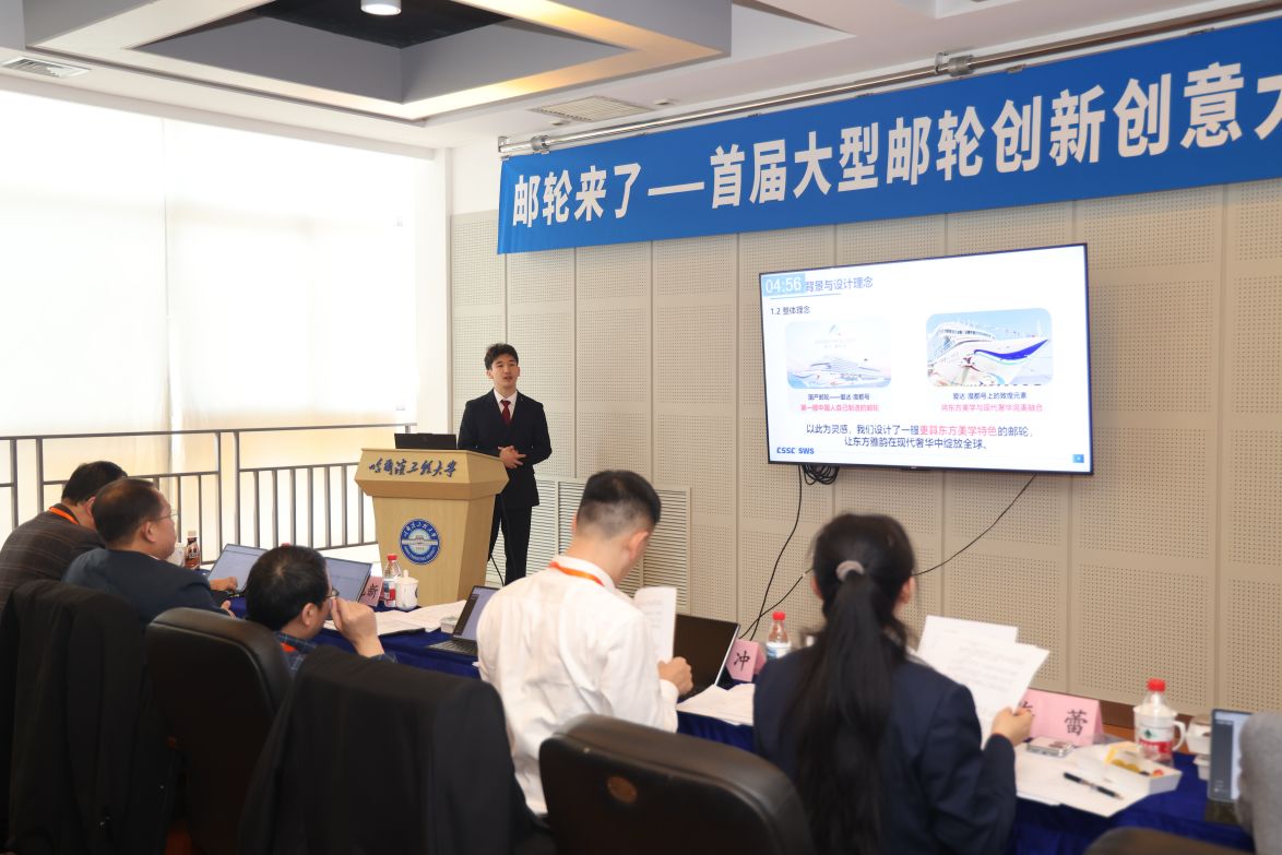 On November 15, the finals of the first Large Cruise Ship Innovation and Design Competition were held in the multifunctional hall of the Qihang Activity Center at Harbin Engineering University (HEU). A team from the College of Mechanical and Electrical Engineering won first prize with their work “Chengtu: Cruise Ship Interior Space Design,” and second prize went to “Dunhuang Lingjing – Cruise Deck Entertainment Space and Interactive Experience Design.” Third prize was awarded to the joint college team for “Azure Coexistence: Marine Aquarium Cruise Design,” and another team from the College of Mechanical and Electrical Engineering for “Nanyang Dream: Cruise Ship Exterior Form and Livery Design.”