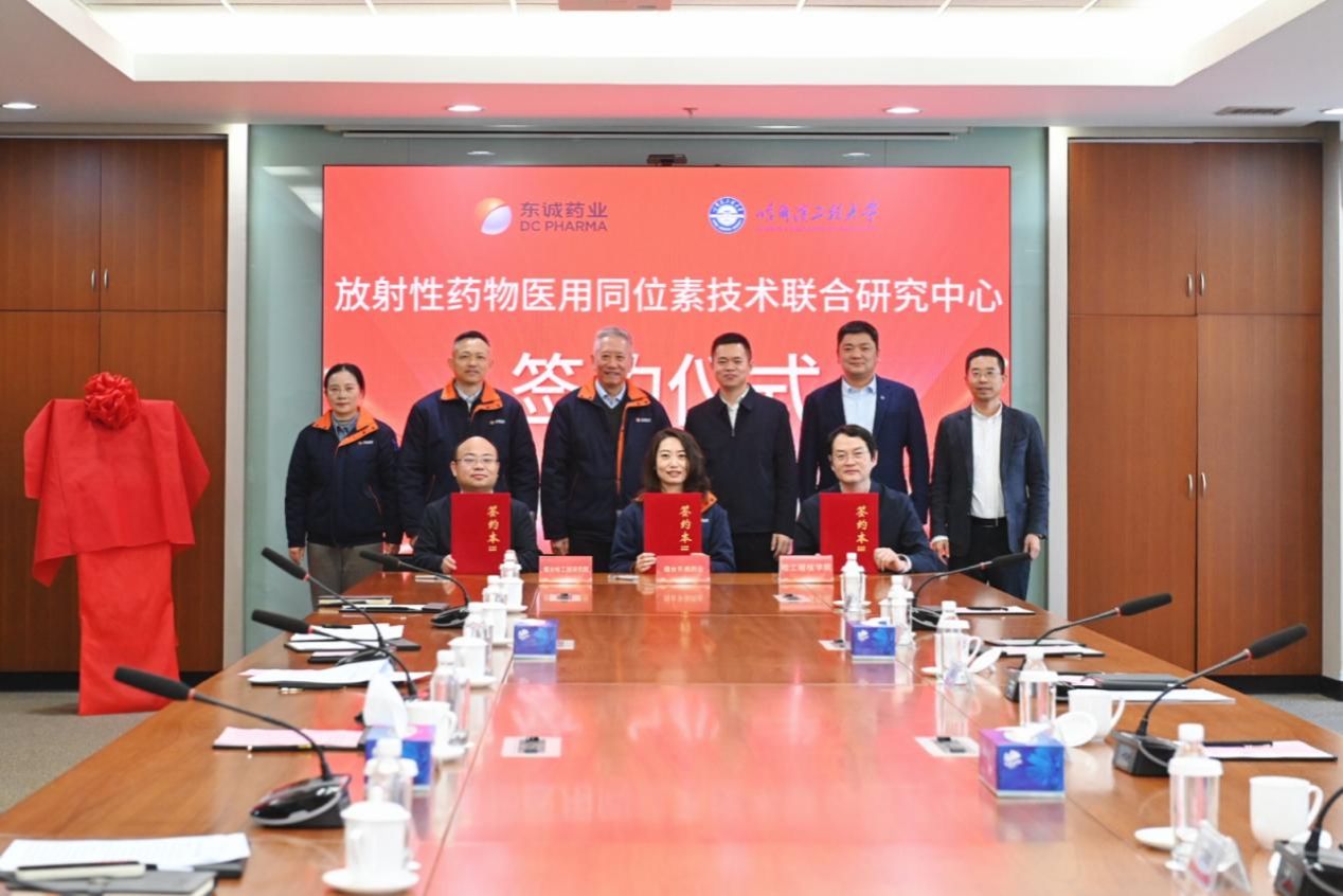Following the speeches, YIN Jingwei and YOU Shouyi jointly unveiled the plaque for the Joint Research Center for Radiopharmaceutical and Medical Isotope Technology. CHEN Hailong, YOU Sai, and representatives from HEU’s College of Nuclear Science and Technology signed the cooperation agreement on behalf of the university and the enterprise, respectively. Through this center, both parties will integrate HEU’s strong scientific research capabilities with Dongcheng Pharmaceutical Group’s extensive industrial application resources, focus on key core technologies in nuclear medicine, explore innovative industry–university–research–application pathways, and provide strong support for the high-quality development of China’s nuclear medical industry.