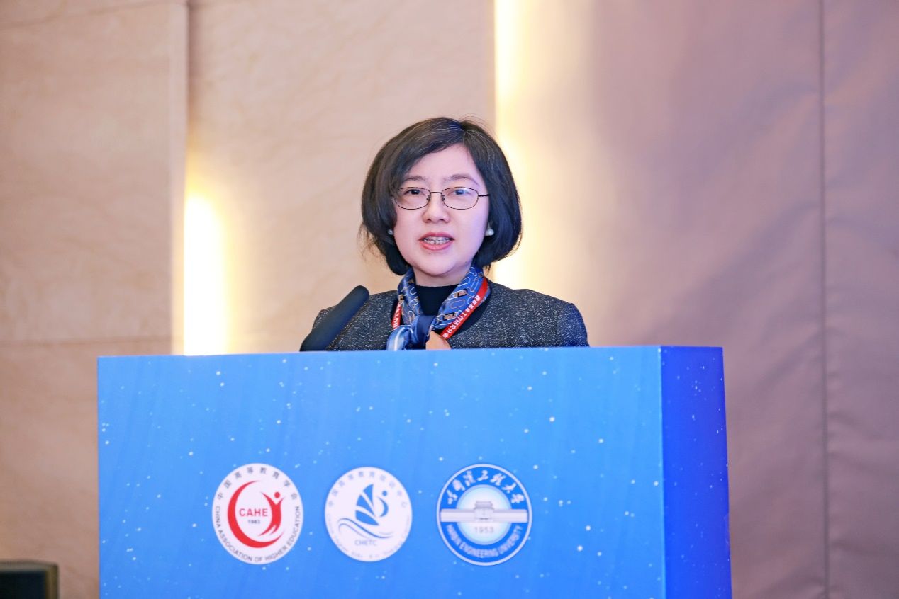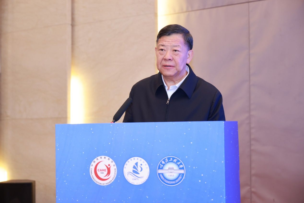 Key attendees included JIANG Zhiying, Vice President of CAHE; YIN Hang, Vice President of HEU; LIU Haohan, Deputy Director of the China Higher Education Training Center; and LIU Zhengrong, Secretary-General of the UFFC.