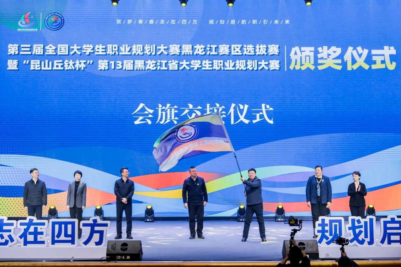 The handover of the competition flag also took place at the award ceremony. It was announced that the finals of the 14th College Students’ Career Planning Competition of Heilongjiang Province will be co-hosted by Harbin Engineering University, Heilongjiang University of Business and Technology, Harbin Preschool Teachers College.